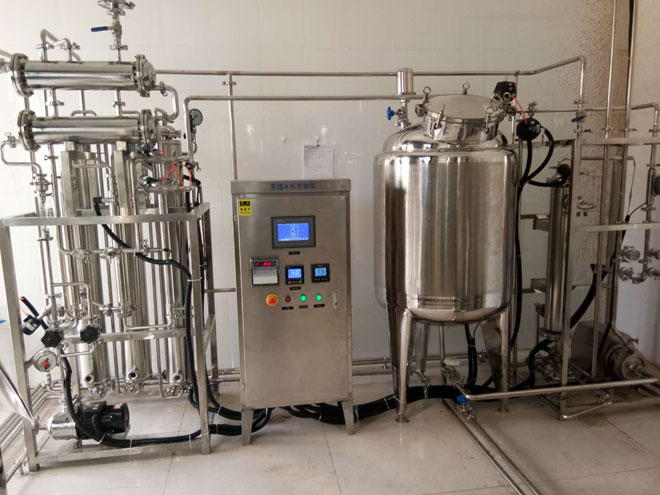 符合2015药典GMP医疗领域纯化水设备双级反渗透作预处理、EDI装置用超纯水设备,采用巴氏灭菌,分配管路用水点采用316L不锈钢管道纯化水设备,清洗用纯化水...[了解详细]